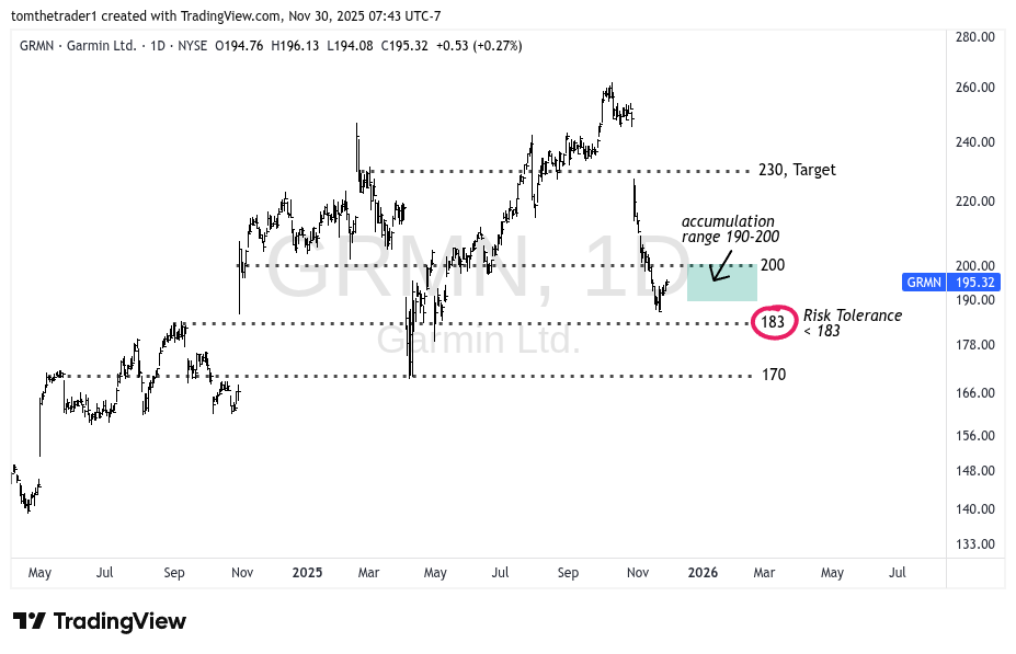 Garmin, Inc (GRMN), 190-200, Risk < 183