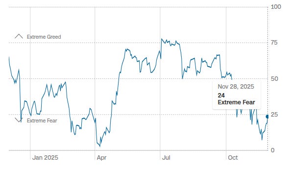 For an entire month now the CNN Fear & Greed index has reported Extreme Fear. The sentiment low on November 20 did well to create consideration for a relief rally. Nonetheless— this reading continues feels disconnected and has not provided much alignment with fund manager positioning at this time.