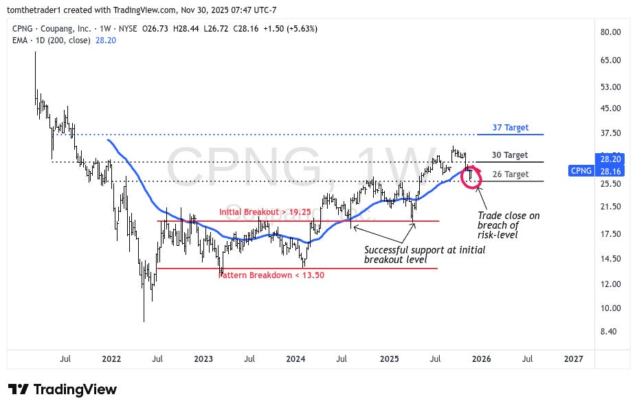 This has been a long, and rewarding trade despite not hitting the 37 target. I will maintain Coupang on the watch list for consideration to resume a trade here in the future.