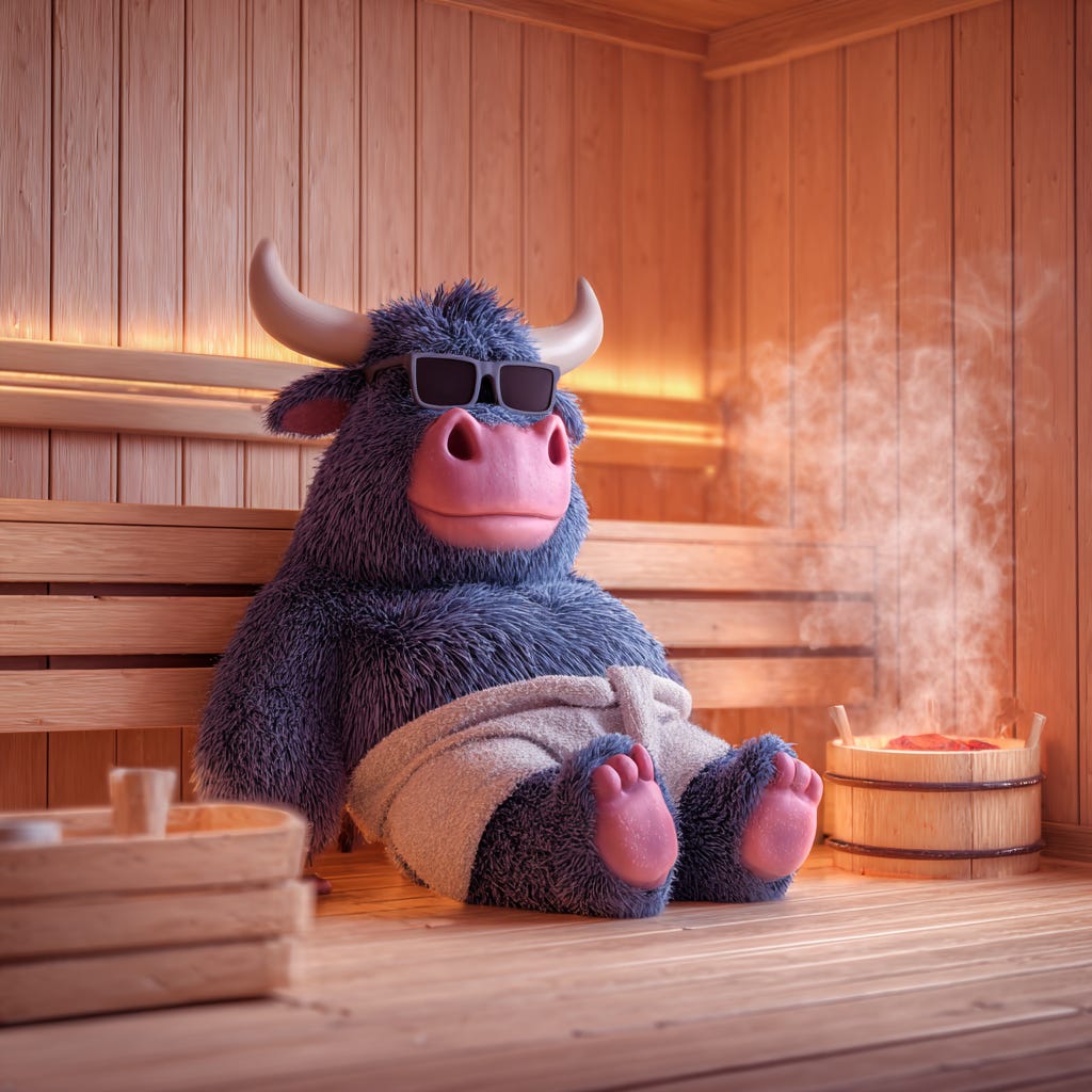 Two panic sessions through last week, and bull participant (& narrative) survived and remained intact. It is precisely weeks like this where I continue to grow appreciation for the established risk analysis system. Until there is an alarm— despite all the headline noise from traditional finance media or on social platforms, the course is maintained until the data says to do otherwise. The S&P 500 found support mid week where the benefit of the doubt was afforded, and closed the week recapturing key trend with a reduced risk-off profile. Like the photo— a moment for the bull to take a sauna break after two “too close for comfort” sessions mid week. The mantra carries on: bullish until proven guilty.