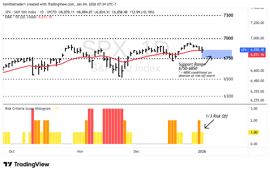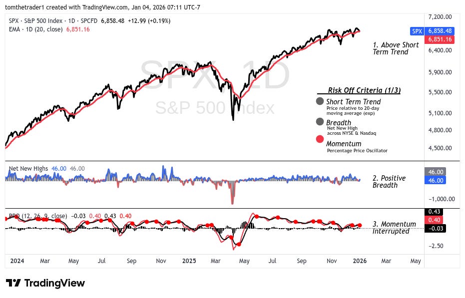 The final session of 2025 flagged potential risk— and the first session of 2026 for now has avoided an alarm scenario. For me, the year begins mostly sidelined.