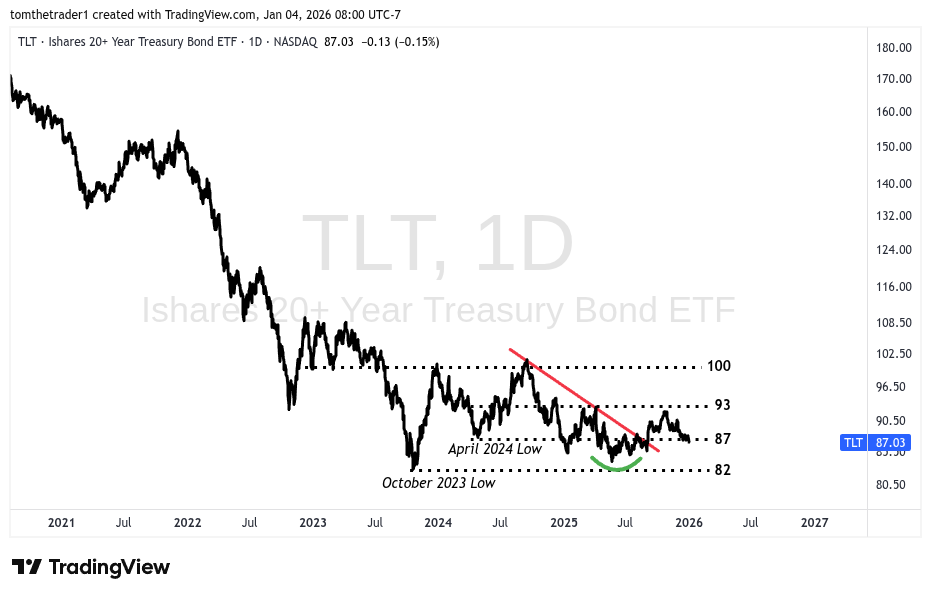 Bond positioning is starting the year at 25% as established in 2025. The position afforded little to no performance, trading sideways through the year. At this time I will maintain this exposure to begin 2026. Trading above 93 will mark a point to monitor any weakness in equities.