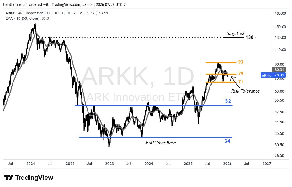 Risk-On Trade: Long ARKK > 81 at 1/4 size, increase to 1/2 above 84