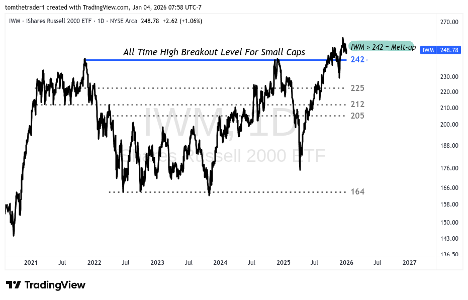 The Russell 2000 ETF IWM remains trading above 242 keeping the melt-up narrative an active thought.