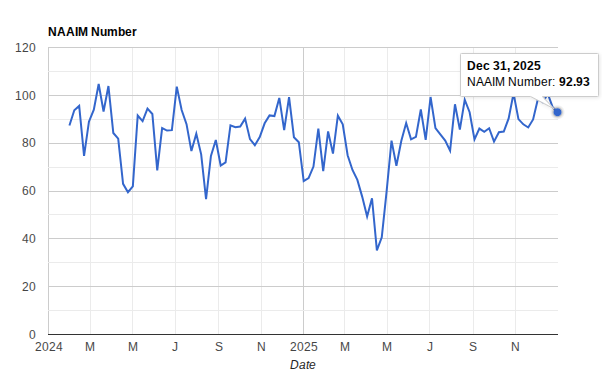 Active fund managers continued to modestly US equity reduce exposure into year end, however the exposure remains strong. At this time between sentiment and positioning there is no insight to capture that adds probability to a melt-up or breakdown.