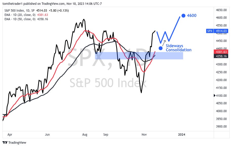 After such a strong rally, a pause or pullback will be a welcomed sign of health— In the near term (6-8 weeks), I am contemplating two potential scenarios.