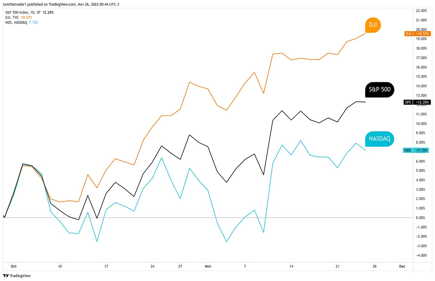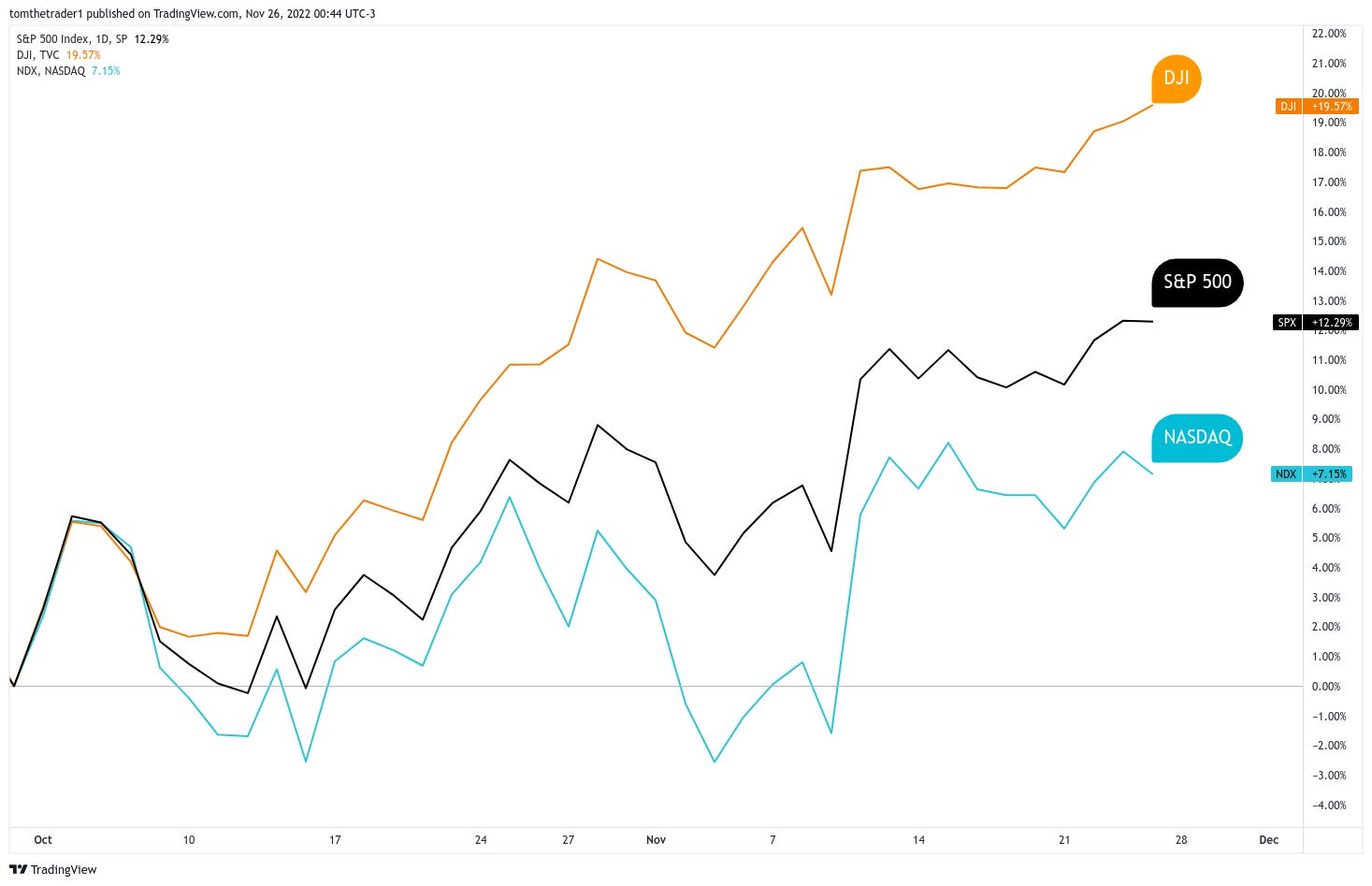With that— the order of the market rally from the October lows does not align with history. Market participants are favoring the Dow over the S&P 500, and the Nasdaq. This is a defensive risk-off allocation. I do not qualify this as bullish for the aggregate market.